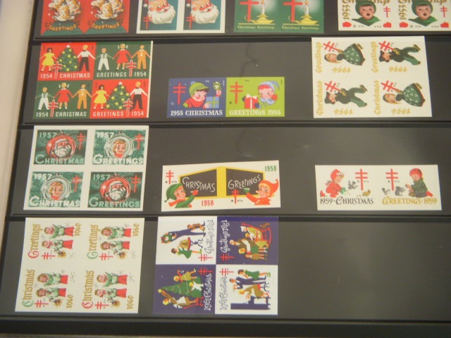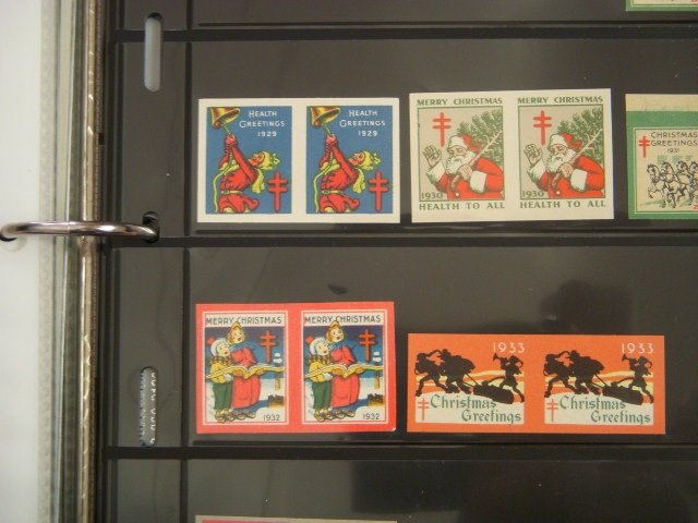 this is an interesting collection in 6 books of christmas seals, boystown easter seals and more. I did not take a picture from all the material in these 6 books .. one book is just christmas seals sheets from 1932 on up. there are rare test stamps, errors, imperf pairs and other strange material.if you have any questions please ask ...(from dealers description)